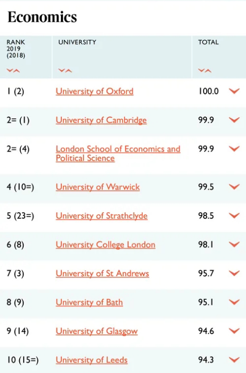 《泰晤士報》不僅對院校進行了綜合排名,同時還對67個專業(yè)進行了單科排名。