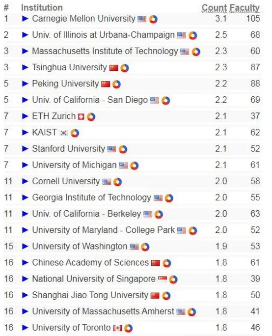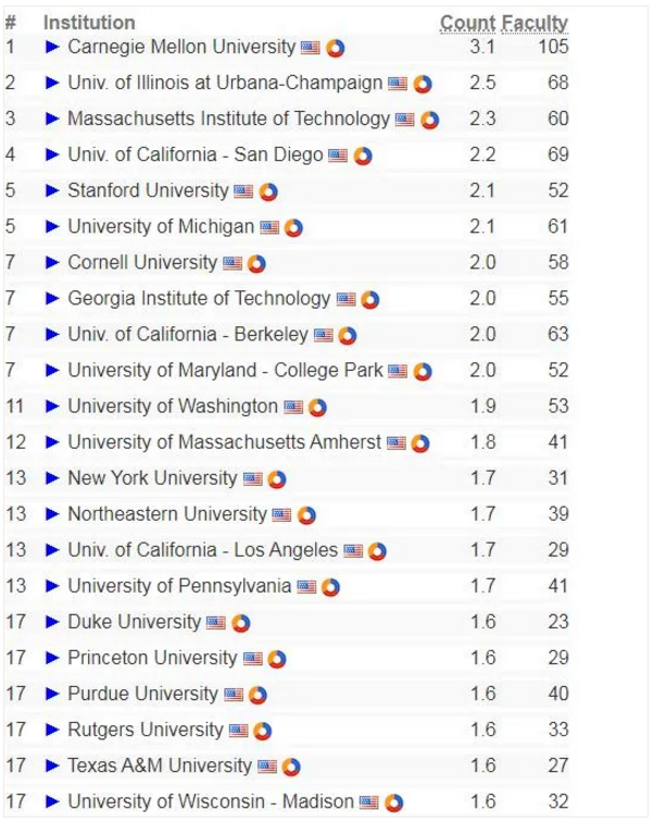 該排名以全球高校和研究機(jī)構(gòu)在計(jì)算機(jī)領(lǐng)域的頂級(jí)學(xué)術(shù)會(huì)議上發(fā)表論文數(shù)量作為主要依據(jù),強(qiáng)調(diào)學(xué)術(shù)影響力和國際活躍度,相對(duì)于傳統(tǒng)的排名方法更能體現(xiàn)出院校在CS領(lǐng)域的真正實(shí)力以及師資力量,因此非常有參考價(jià)值。