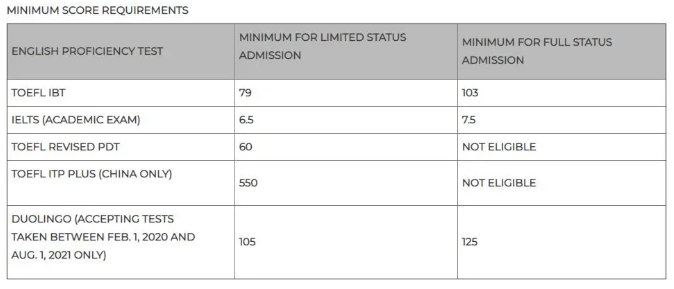 以2020年秋季申請(qǐng)為例,最低分?jǐn)?shù)要求如下——
