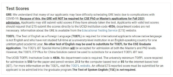 3. CSE博士或2021年秋季入學(xué)的碩士申請(qǐng)者不需要提交GRE(如果有也可以提交,學(xué)校會(huì)受理)。