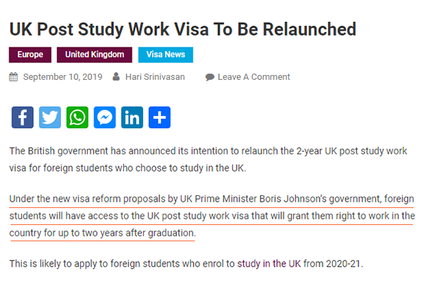英國恢復(fù)PSW簽證,留學(xué)生畢業(yè)后可在英工作兩年