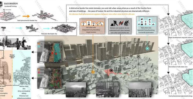 比如一個(gè)項(xiàng)目選擇在長沙的新城區(qū)與老城區(qū)相銜接的空間,這個(gè)空間隔離了新老城區(qū),,對新老城區(qū)的城市結(jié)構(gòu)及特色進(jìn)行了深入的分析,提煉出新老城區(qū)的各自特色及人群與活動(dòng)的不同特點(diǎn)。