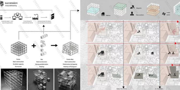 要能夠很好的解決當(dāng)?shù)匦吕铣菂^(qū)的銜接問題,該項(xiàng)目將鋼鐵框架模塊化,并形成可移動(dòng)可拆卸模式,方便以模板化的形式解決整體新老城區(qū)的問題。