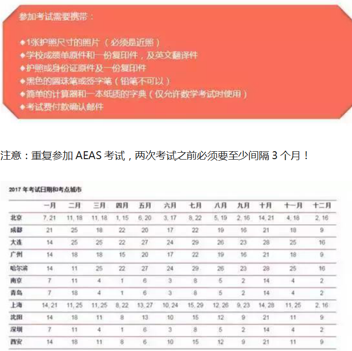 注意:重復(fù)參加AEAS考試,兩次考試之前必須要至少間隔3個月!