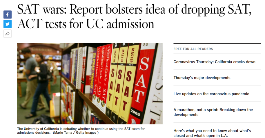 與此同時(shí),在3月19日,加利福尼亞大學(xué)(UC)董事會(huì)也針對(duì)是否取消SAT和ACT考試成績(jī)作為入學(xué)條件進(jìn)行了討論。(提前說(shuō)明,該討論并不是針對(duì)疫情期間的考試。)其中,主席JohnA.Pèrez、副主席CeciliaEstolano和RegentEloyOrtizOakley均對(duì)標(biāo)化考試表示了深深的懷疑。伯克利分校校長(zhǎng)CarolChrist和加州大學(xué)教務(wù)長(zhǎng)MichaelBrown支持取消,但是圣地亞哥分校表示反對(duì)。洛杉磯分校則擔(dān)心取消標(biāo)化成績(jī)要求會(huì)給將來(lái)的申請(qǐng)審核工作帶來(lái)更大的挑戰(zhàn)。