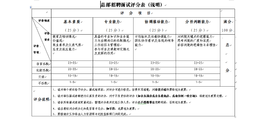 500強(qiáng)央企國(guó)企面試評(píng)分標(biāo)準(zhǔn)(舉例)
