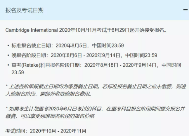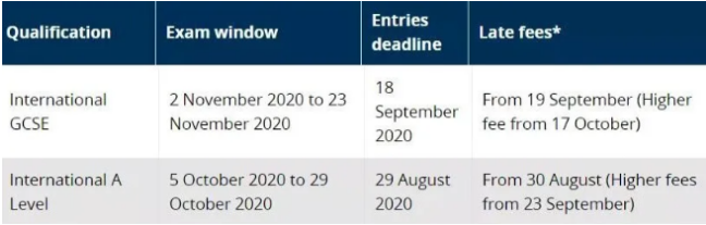 2020年10月A-level考試報名時間表