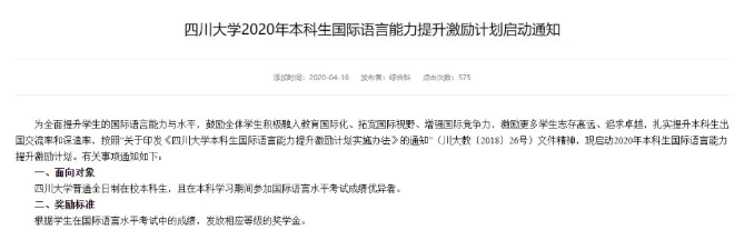 我們注意到許多國內(nèi)高校為了幫助大家提升英語水平,激發(fā)學(xué)習(xí)熱情也是操碎了心,一些學(xué)校專門設(shè)立了有關(guān)語言能力的專項獎學(xué)金獎勵計劃。