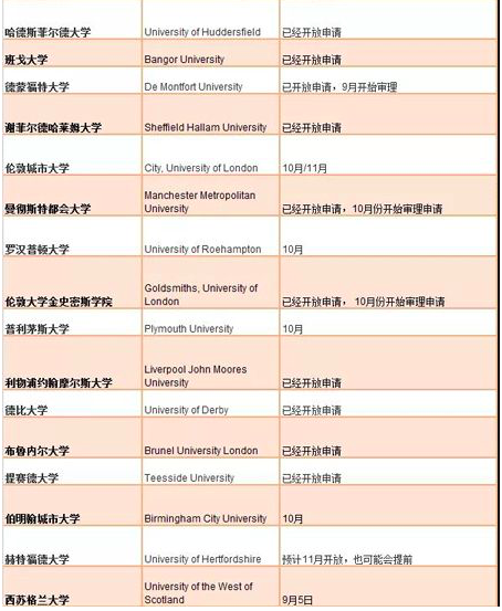 大部分碩士課程9月2日開放申請。以下專業(yè)暫未開放申請: