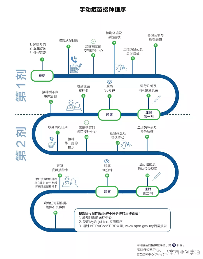 注意:所有人登記后,馬衛(wèi)生部都會為其保留疫苗,登記后不能爽約不接種,也不能插隊接種,否則將面臨罰款或監(jiān)禁。