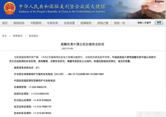 使館提醒|事態(tài)嚴(yán)峻,留美中國公民須注意安全!